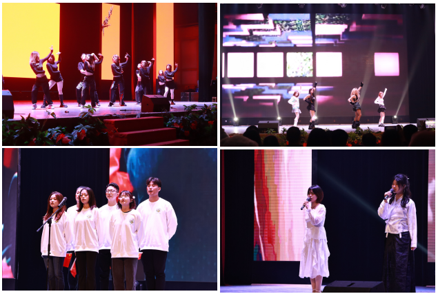 晚会前同学们观看了2023级研究生招生视频和本科生招生宣传视频,再次深入了解了学院近几年取得的非凡的成绩。在时尚的节目表演环节,舞蹈《thirsty》、《kitsch》、歌曲《年轮》、合唱《我和我的祖国》等节目让大家平滑如镜的心泛起了阵阵涟漪,舞动人心,青春洋溢、整齐划一,青春的光芒与激情在此刻绽放,现场掌声不断,气氛热烈。